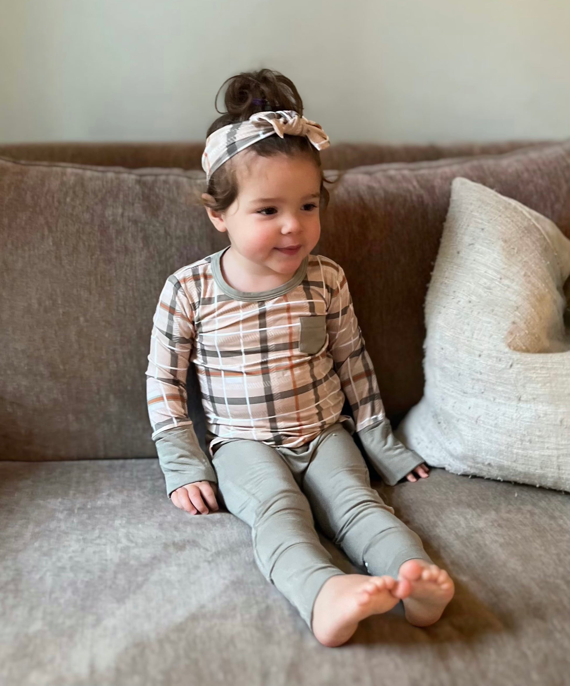 Complete your baby's look by complementing your RompSet™ with warm autumn hues and a sophisticated plaid print with the Archie Headband.