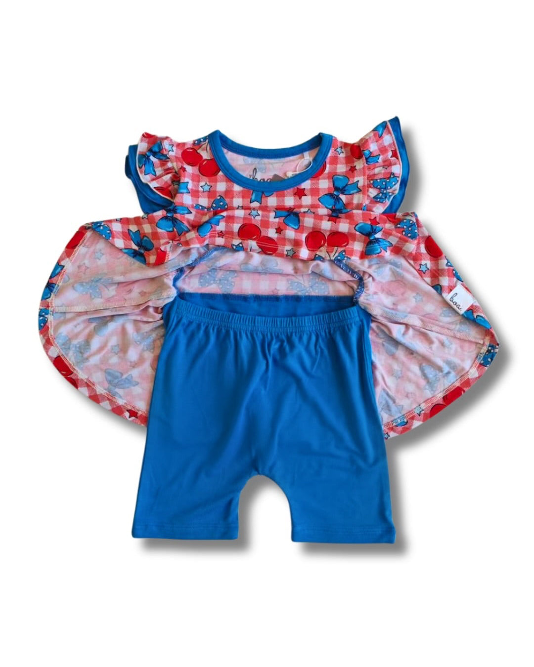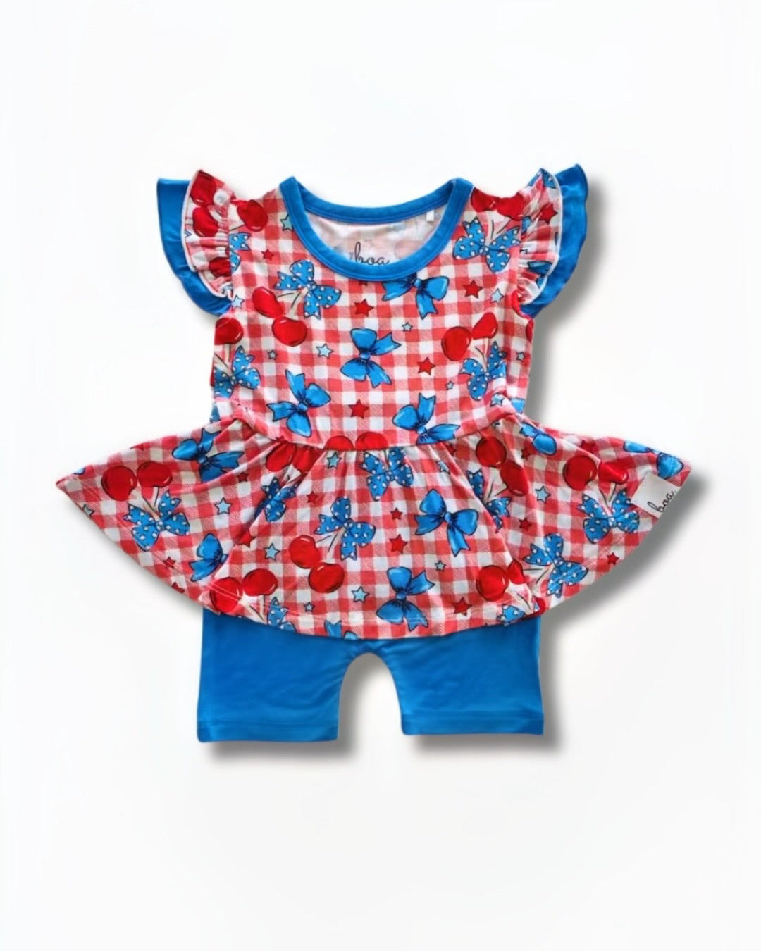 Red, white, and too cute! Our newest RompSet™ brings all the patriotic summer vibes with built-in shorts + a twirl dress in one easy piece. Perfect for parades, picnics & play!