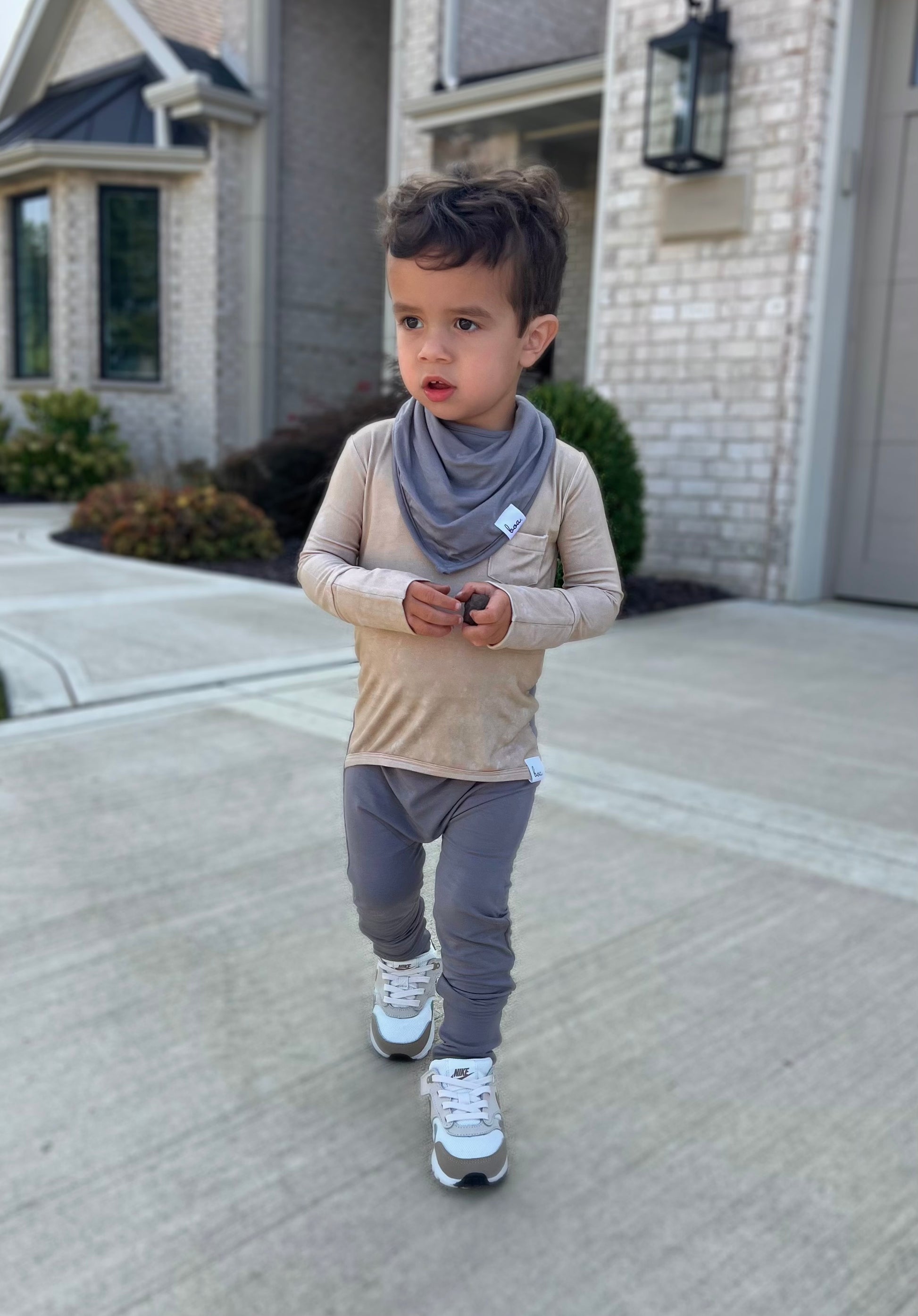 Introducing our Scarf Bib, a versatile and stylish blend of scarf, bandana, and bib, designed to keep your little one both fashionable and dry. Pair it with our matching RompSet™ romper for a complete, coordinated look that's as practical as it is adorable!
