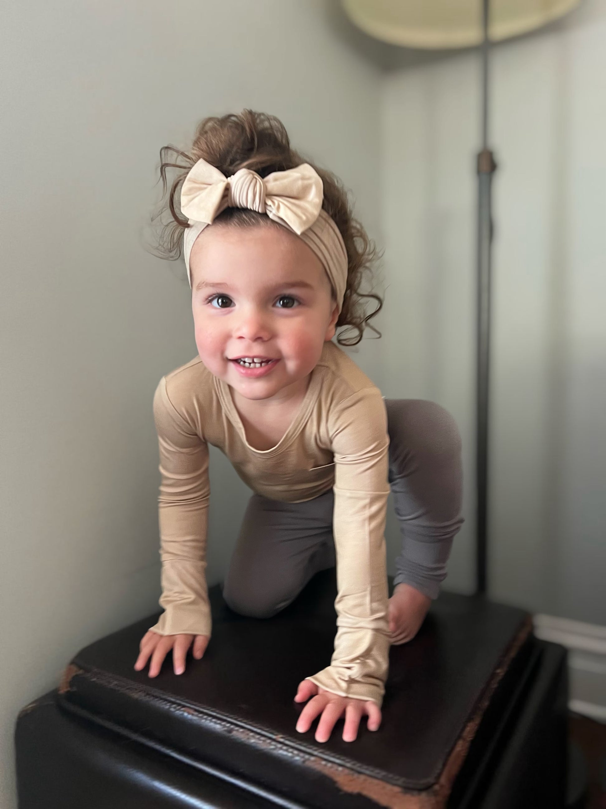 Add a touch of charm and elegance to your little girl’s outfit with our lovely bow headband. Crafted from a blend of 95% viscose from bamboo and 5% spandex, this headband combines softness, stretch, and breathability for ultimate comfort. The natural bamboo viscose is gentle on sensitive skin, making it the perfect accessory for any RompSet romper.