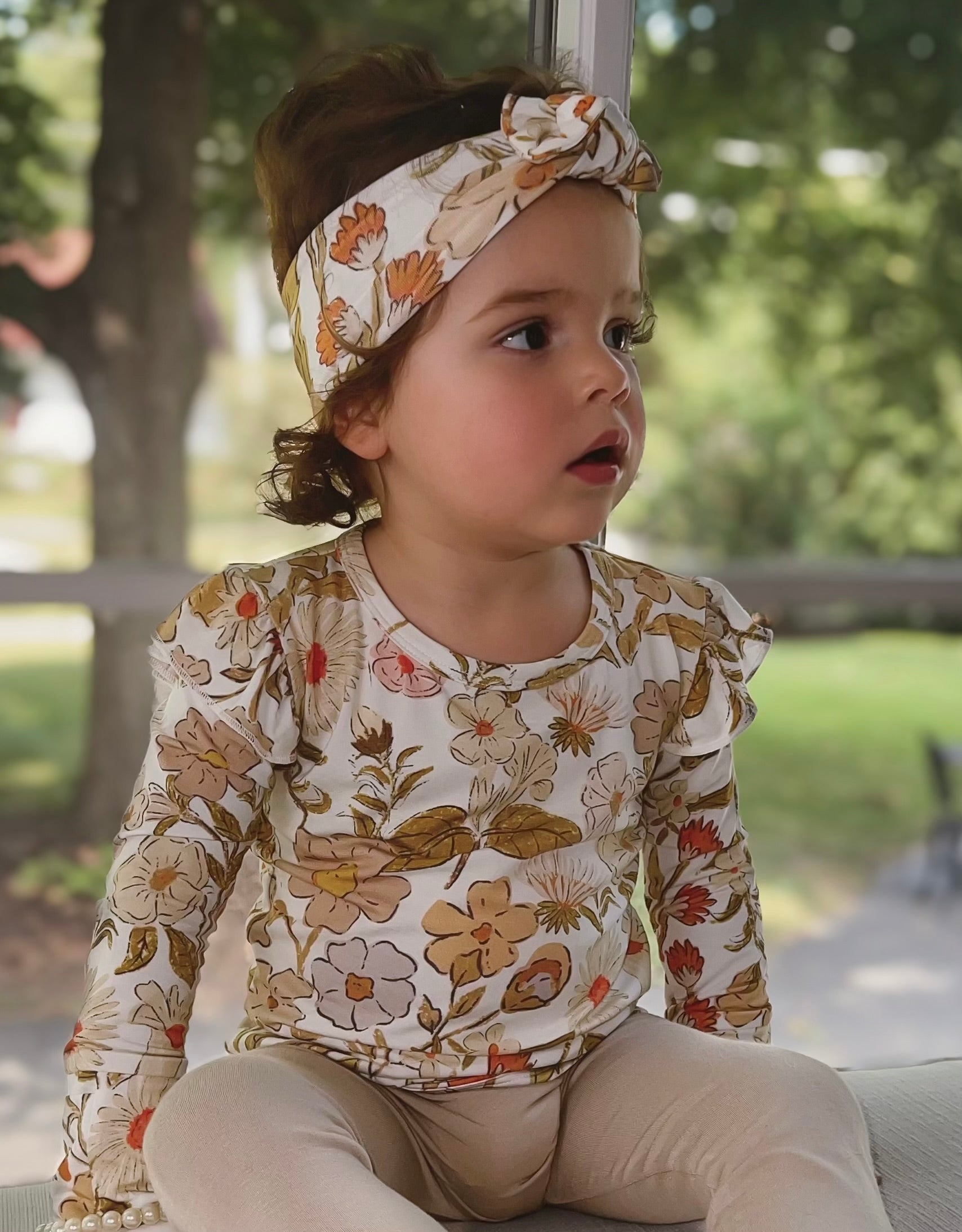 Top off your Lola RompSet™ with the warm fall florals of this matching headband, adding the final touch of charm to this beautiful outfit.