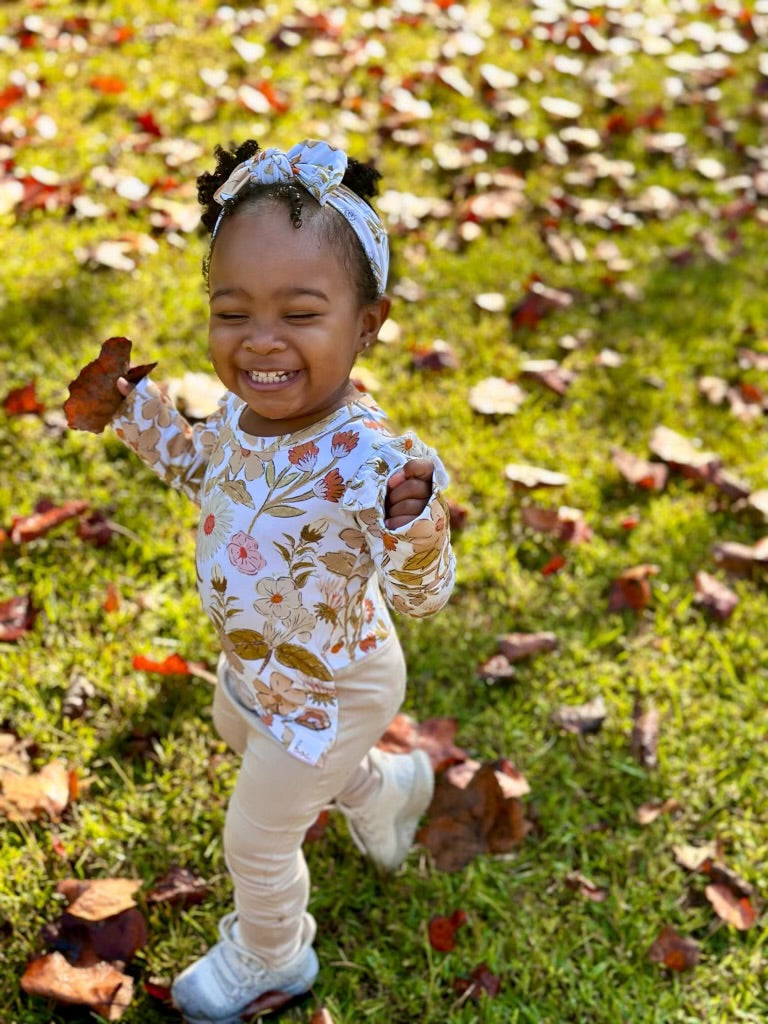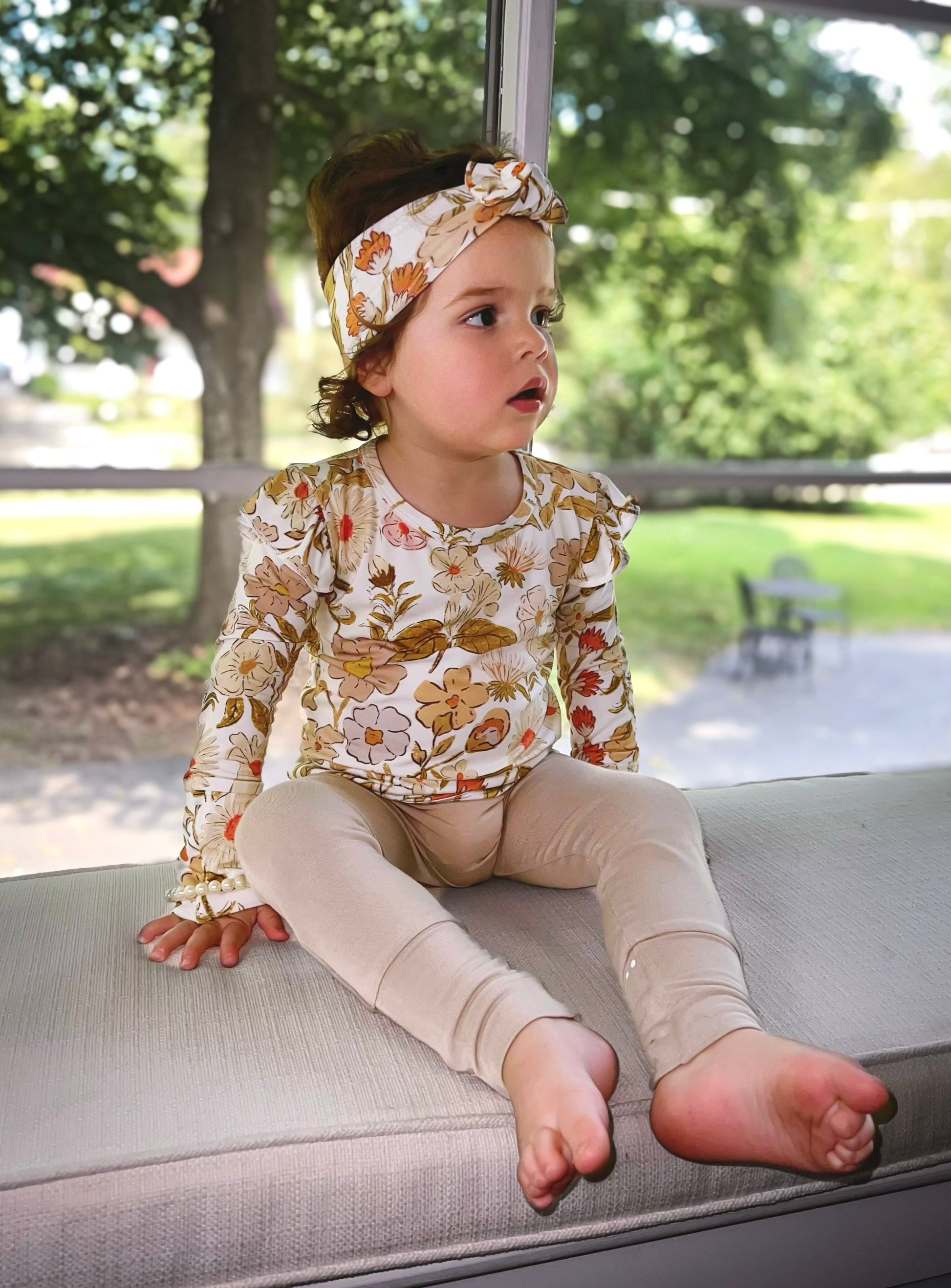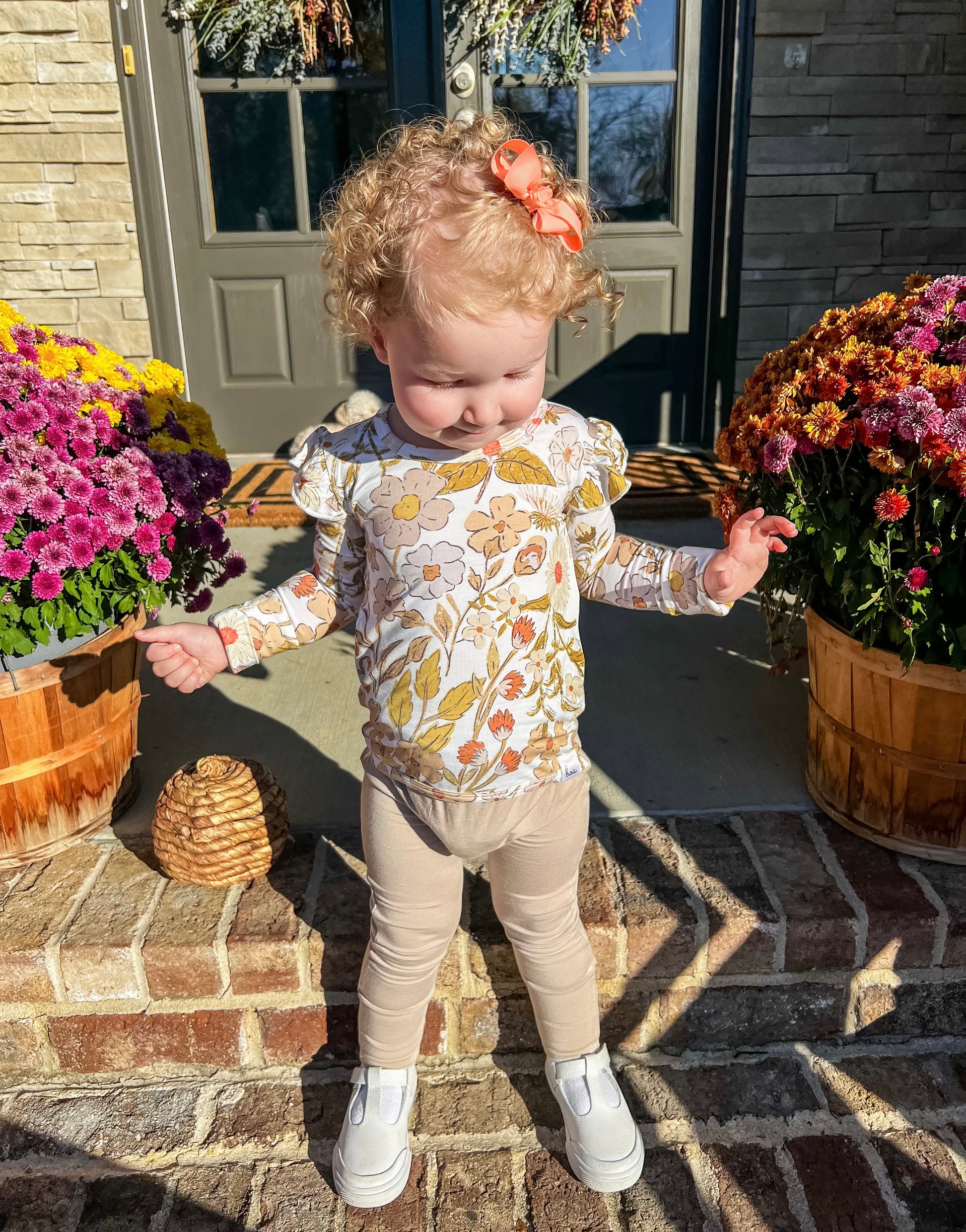 Featuring beautiful hand-drawn, fall florals with chic flutter sleeves, the Lola bamboo RompSet™ keeps your baby stylish and cozy all season long.