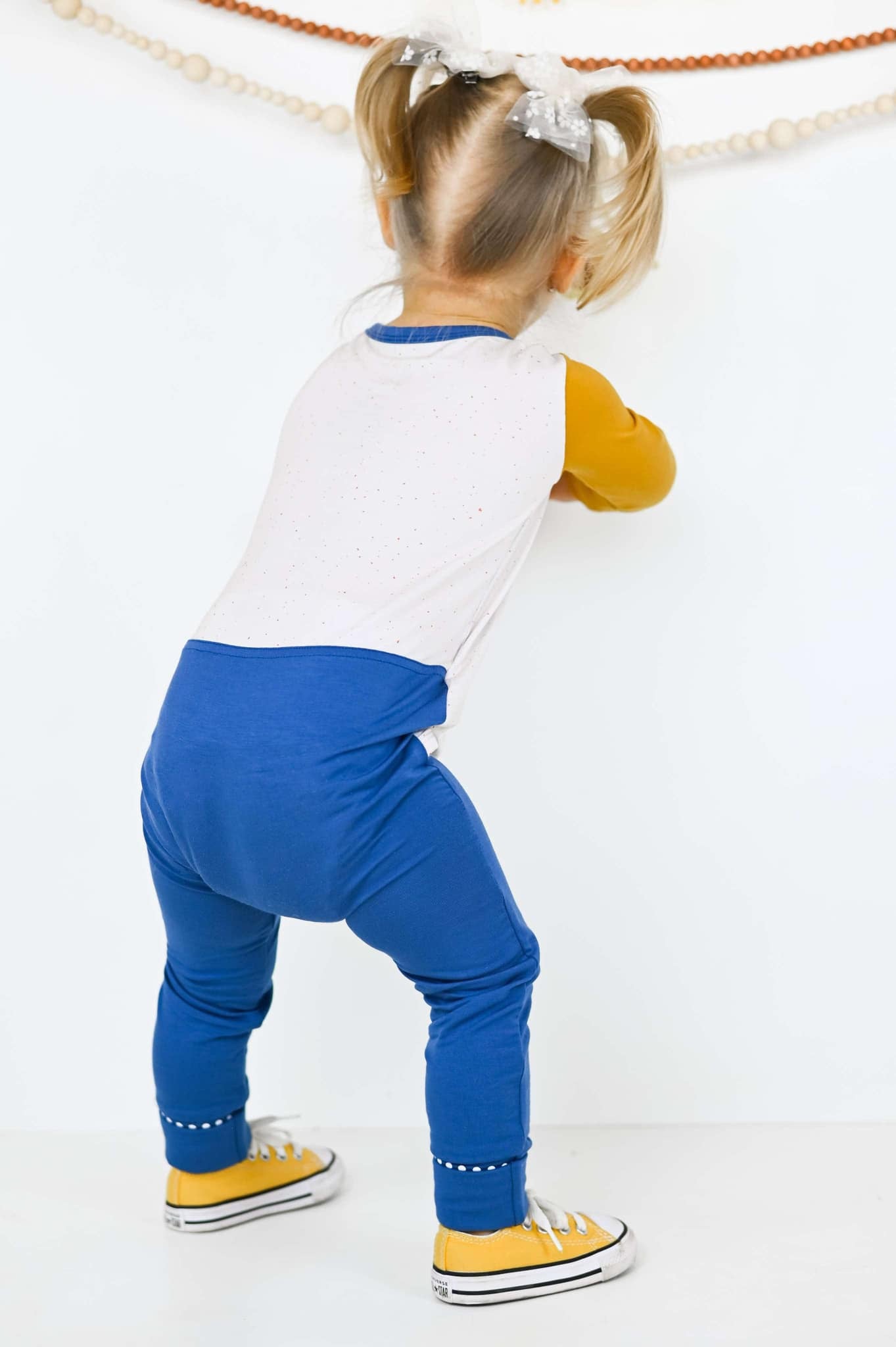 Everyday style made easy with the Oliver RompSet™! Featuring a cool color-block design with a bright blue pant, speckled top with a charming front pocket, and bold gold sleeves. This RompSet™ is perfect for your little trendsetter's adventures!