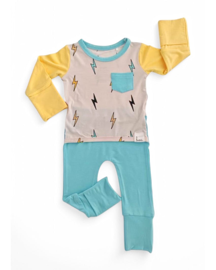 The Leo RompSet™ brings high-energy style with vibrant colors and edgy lightning bolts—designed for little ones who are always on the move. Made for effortless comfort with no snaps, zippers, or hassle, it’s as functional as it is fierce.